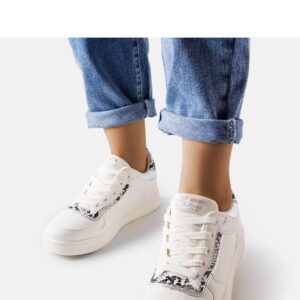 Białe sneakersy z eko skóry Nelma to idealne obuwie na sezon jesienno-wiosenny. Wykonane z wysokiej jakości skóry ekologicznej, zapewniają wygodę i styl na co dzień. Ich biała guma podeszwowa dodaje lekkości i świeżości całej stylizacji. Zapięcie na sznurowane sprawia, że buty idealnie dopasowują się do stopy, zapewniając komfort noszenia. Sneakersy z kolekcji Jesień/Wiosna to must-have dla każdej modowej świadomej osoby!