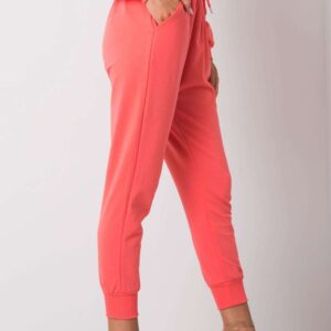 Spodnie dresowe z gumką i wiązaniem w pasie. Po bokach kieszenie wsuwane, nogawki zakończone ściągaczami.
