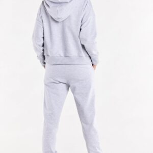 Proste spodnie dresowe z kieszonkami wsuwanymi oraz wszytą gumą w pasie. Nogawki zakończone ściągaczami.