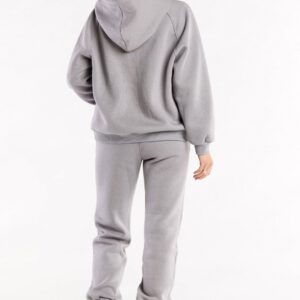 Luźne spodnie dresowe z ozdobnymi szwami na przodzie nogawek, w pasie wszyta guma. Po bokach kieszenie wsuwane. Nogawki wykończone ściągaczami.