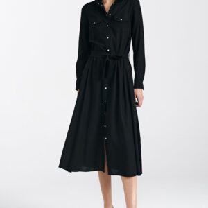 Sukienka lniana zapinana na napy S241 Black – Nife