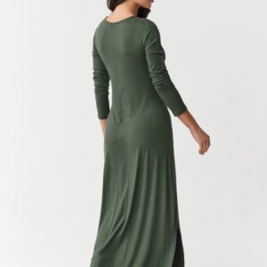 Sukienka maxi z wiskozy to połączenie wygody i ponadczasowej elegancji. Miękki, oddychający materiał sprawia, że nosi się ją wyjątkowo komfortowo przez cały dzień, a długie rękawy i efektowne wiązanie w talii pięknie podkreślają sylwetkę. Okrągły dekolt pasuje do każdego typu sylwetki i stylu. Subtelne rozcięcia po bokach nadają całości lekkości i kobiecego charakteru, jednocześnie zapewniając swobodę ruchów. To model, który doskonale sprawdzi się zarówno na co dzień, do pracy, jak i na spotkania w gronie znajomych. Wystarczy zmienić dodatki, aby nadać stylizacji bardziej casualowego albo eleganckiego charakteru. Dzięki klasycznym kolorom, antracytowym, czarnym, bordowym, khaki i czekoladowym łatwo dopasujesz ją do swojej garderoby i stworzysz wiele wyjątkowych zestawów. Sukienka maxi z wiązaniem w talii to propozycja, która łączy nowoczesny wygląd, wygodę i uniwersalność. Świetnie prezentuje się zarówno z botkami i ramoneską, jak i w duecie z eleganckimi szpilkami czy sportowymi sneakersami.