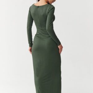 Sukienka maxi z długim rękawem to kwintesencja kobiecości i elegancji, stworzona z myślą o kobietach, które lubią podkreślać swoje atuty i czuć się wyjątkowo w każdej sytuacji. Wykonana z elastycznego, przyjemnego w dotyku materiału, doskonale dopasowuje się do sylwetki, zapewniając nie tylko wygodę, ale także perfekcyjny wygląd przez cały wieczór. Największym atutem tej sukienki jest efektowne marszczenie w talii, które optycznie wysmukla sylwetkę, podkreśla kobiece kształty i jednocześnie maskuje drobne niedoskonałości. Dzięki temu każda kobieta poczuje się w niej pewnie i atrakcyjnie. Długość maxi dodaje kreacji klasy oraz sprawia, że całość prezentuje się niezwykle stylowo i szykownie. Uniwersalny krój pozwala na łatwe dopasowanie dodatków, sukienka świetnie wygląda zarówno w połączeniu z klasycznymi szpilkami, jak i z nowoczesnymi botkami czy sandałkami na obcasie. Możesz ją zestawić z delikatną biżuterią, aby uzyskać subtelny efekt, lub z bardziej wyrazistymi akcesoriami, jeśli chcesz stworzyć mocniejszy, wieczorowy look. Sprawdzi się podczas rodzinnych spotkań czy świątecznych przyjęć, kiedy chcesz wyglądać wyjątkowo i czuć się pewnie. Elegancka sukienka maxi z marszczeniem to synonim kobiecości i ponadczasowej klasy. Jeśli szukasz kreacji, która podkreśli Twoją sylwetkę, doda Ci pewności siebie i będzie odpowiednia na wiele okazji ten model to doskonały wybór.