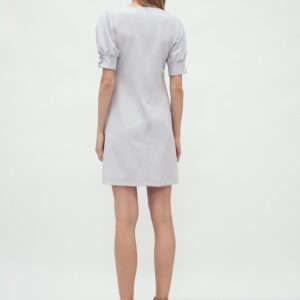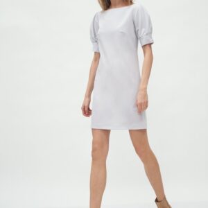 Prosta i jednocześnie elegancka sukienka z bufiastymi rękawami to idealne rozwiązanie dla kobiet które cenią prostotę. Delikatny dekolt w łódkę nadaje jej subtelności. Sukienka nie posiada podszewki, więc będziesz czuła się swobodnie. To idealny wybór na codzienny look do pracy czy biznesowe spotkanie.