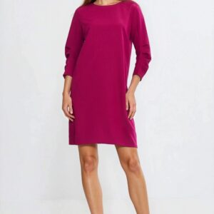 Sukienka z zakładkami na rękawach S285 Fuksja – Nife
